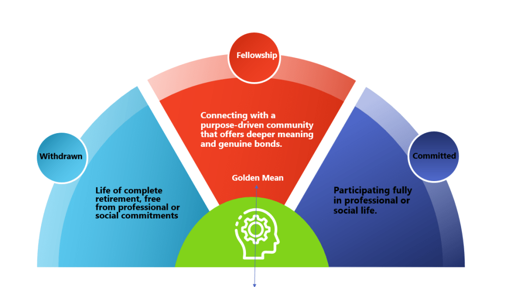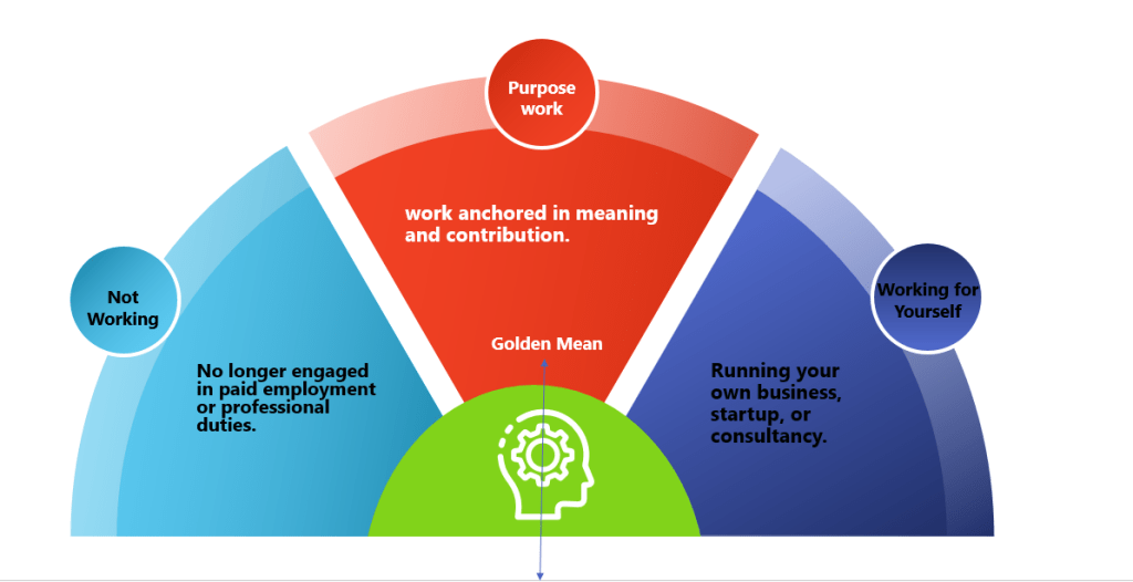 Let’s map out Mr. Ram’s alternatives and see how the ‘Golden Mean’ can guide him toward a balanced path — one that leads to a meaningful and productive life after his professional career.
