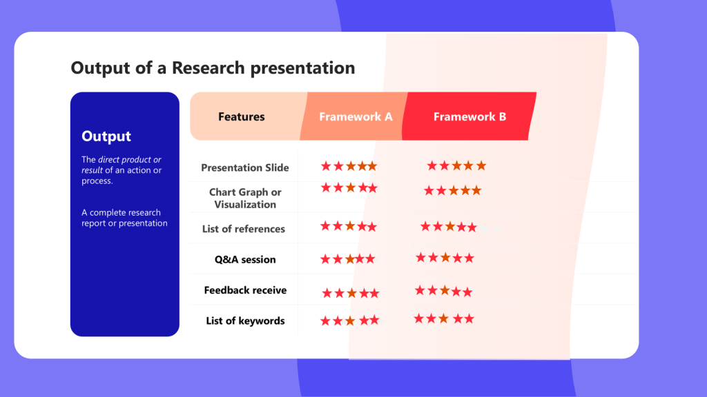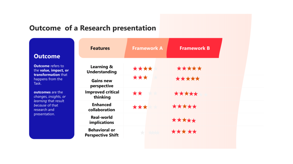 Now Let’s compare Framework A and B in terms of Outcome and Output